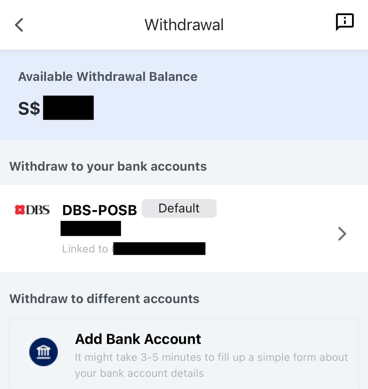 Select bank account to withdraw to: It is only available if your bank account information has been added.
